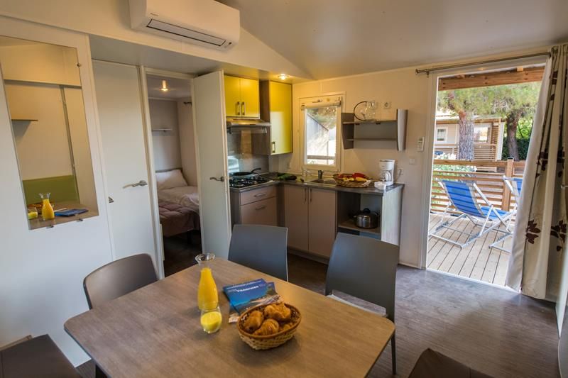 Een comfortabele stacaravan om in je eigen tempo te leven in een ontspannen sfeer in het hart van een autovrije camping.
